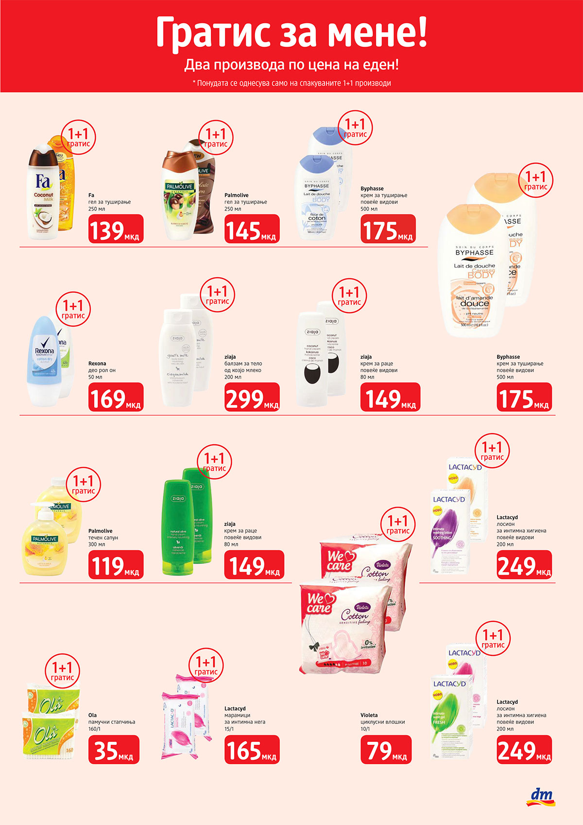 1+1 ГРАТИС АКЦИЈА во продавницата на dm во нашиот трговски центар.