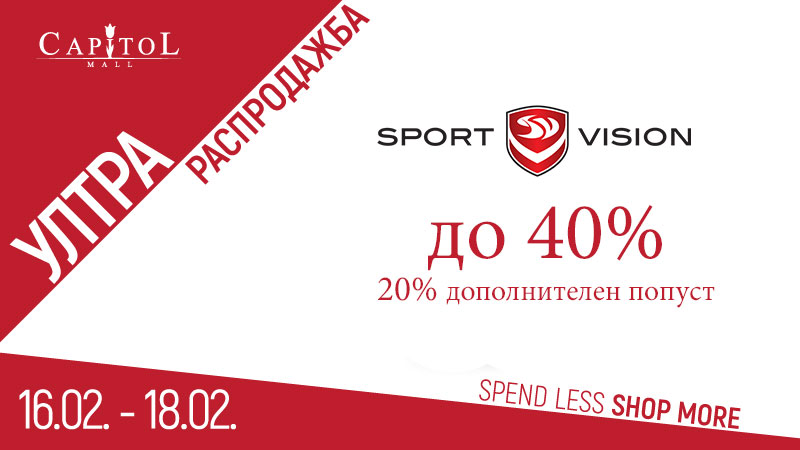 Во мултибренд продавницата на Sport Vision важи неодолива понуда од -40% дополнителен попуст на зимскиот асортиман и -20% дополнителен попуст на веќе намалените цени на останатиот асортиман.