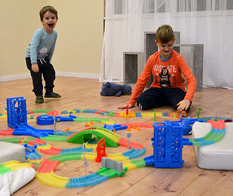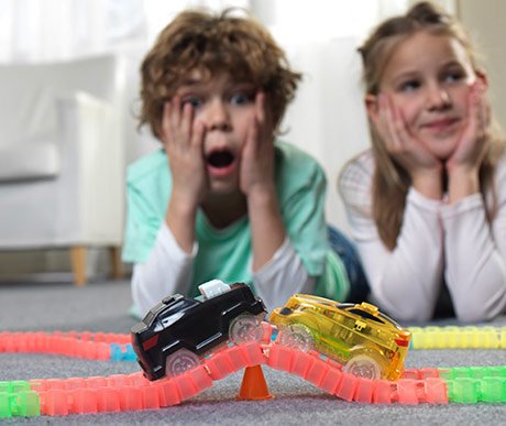 Вистинската авантура почнува кога ќе ги изгаснете светлата. Magic Tracks патеката свети во темница и ја претвора детската соба во магичен ринг.