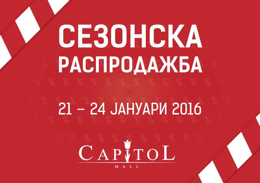 За крај на одбележување на зимските сезонските попусти од 21 до 24 јануари 2016 ги покануваме сите да дојдат на шопинг со одлични попусти до -70% во Капитол мол. За поголемо уживање во шопингот повторно подготвивме интересна програма за сите.